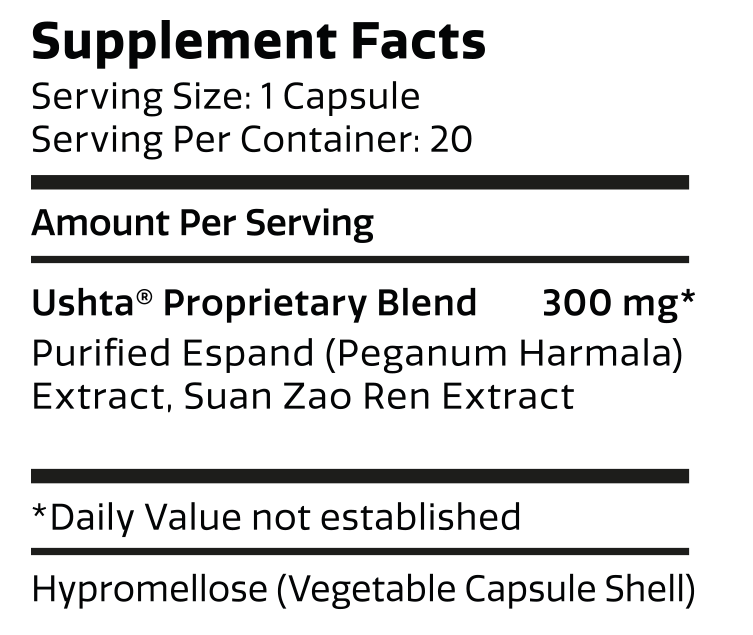 Ushta Mood Boost Supplement is formulated with a precise combination of Espand-derived beta-Carbolines and Suan Zao Ren-derived extracts in order to produce the synergistic effect of these two plants, and has been shown in individuals during meditation to: